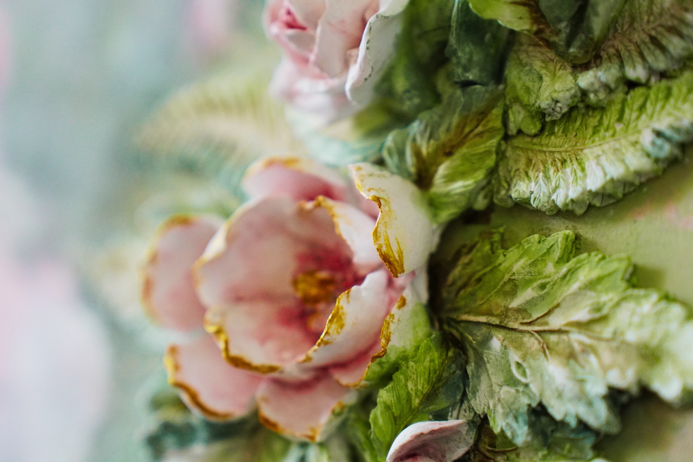 Le trovi in ceramica decorate con drappi di fiori con tecnica molto vicina alle bellissime creazioni italiane della Thun e della Capodimonte.